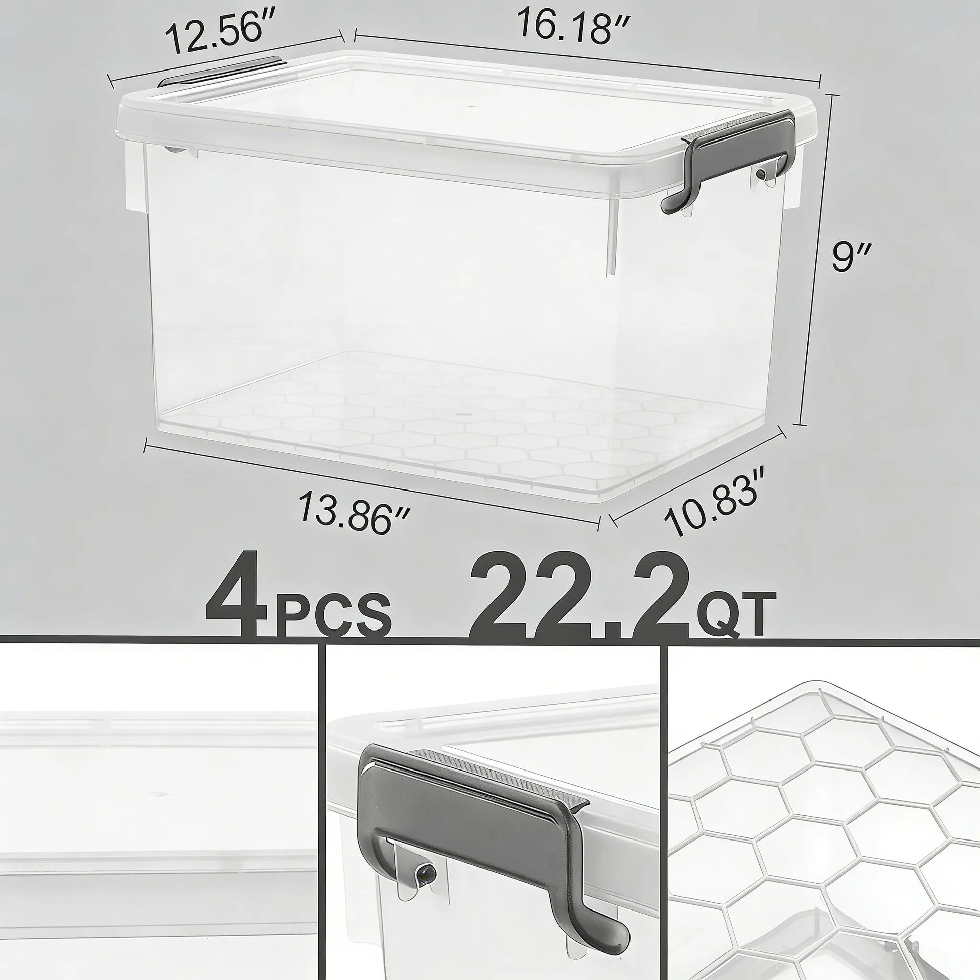 4-Pack 22.2 Qt Storage Bins with Lids, Clear & Stackable