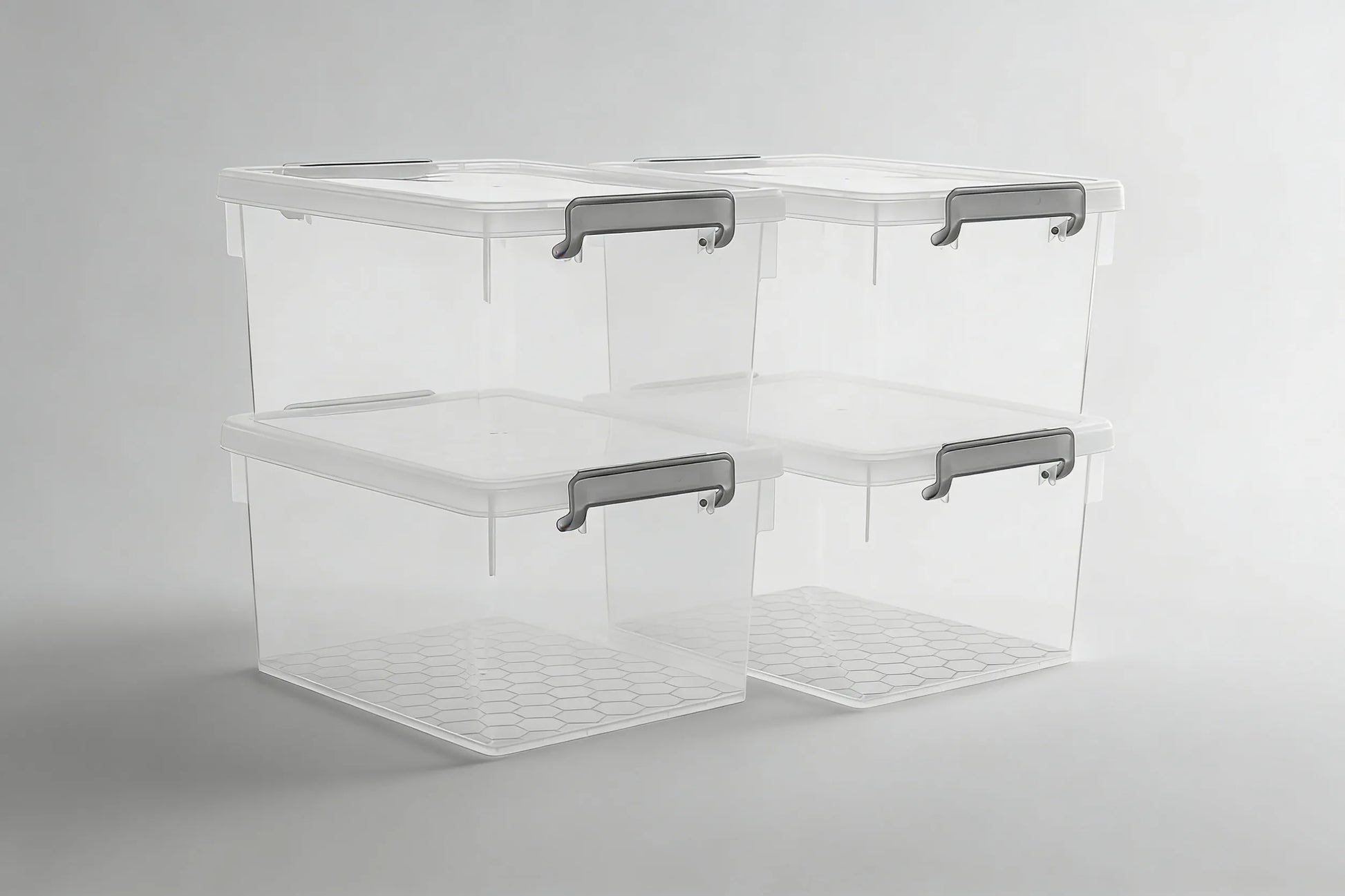 Clear View & Secure Latches – Transparent bases and lids let you see contents quickly. Strong non-slip latches keep items secure, dust-proof, and dry during storage.